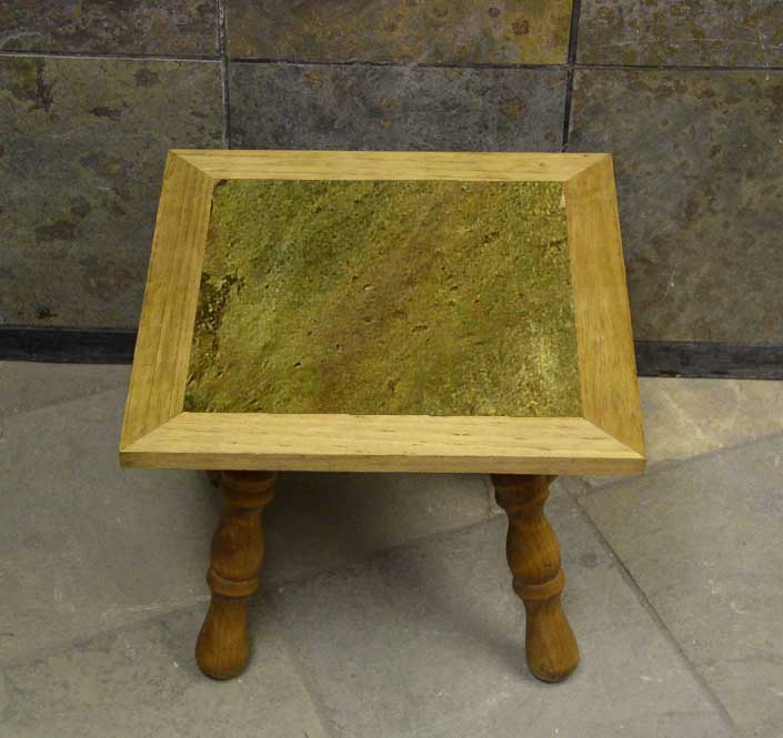 form rises up like a pedastle, offering the glowing colorful table top to